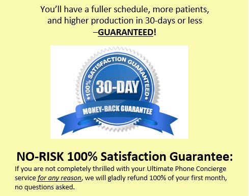 The Ultimate Phone Concierge New Patient Jumpstart Program uses highly trained, professional phone schedulers to help fill your schedule and adds an average of 10 new patient appointments to your schedule per month.